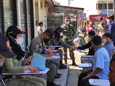 Mengantisipasi penyebaran covid-19 pasca lebaran terus digencarkan oleh tim satgas kabupaten. Banyak kegiatan yang dilakukan salah satunya adalah dengan menggelar operasi yustisi secara terus menerus baik tingkat kabupaten hingga tingkat desa. Seperti yang dilaksanakan pada hari ini melakukan operasi protokol kesehatan bertempat di komplek Pasar Selomerto. (8/6)