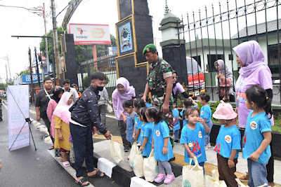 TK SC Klab menggandeng Kodim Wonosobo Bagi Takjil, Edukasi Anak Peduli Sesama